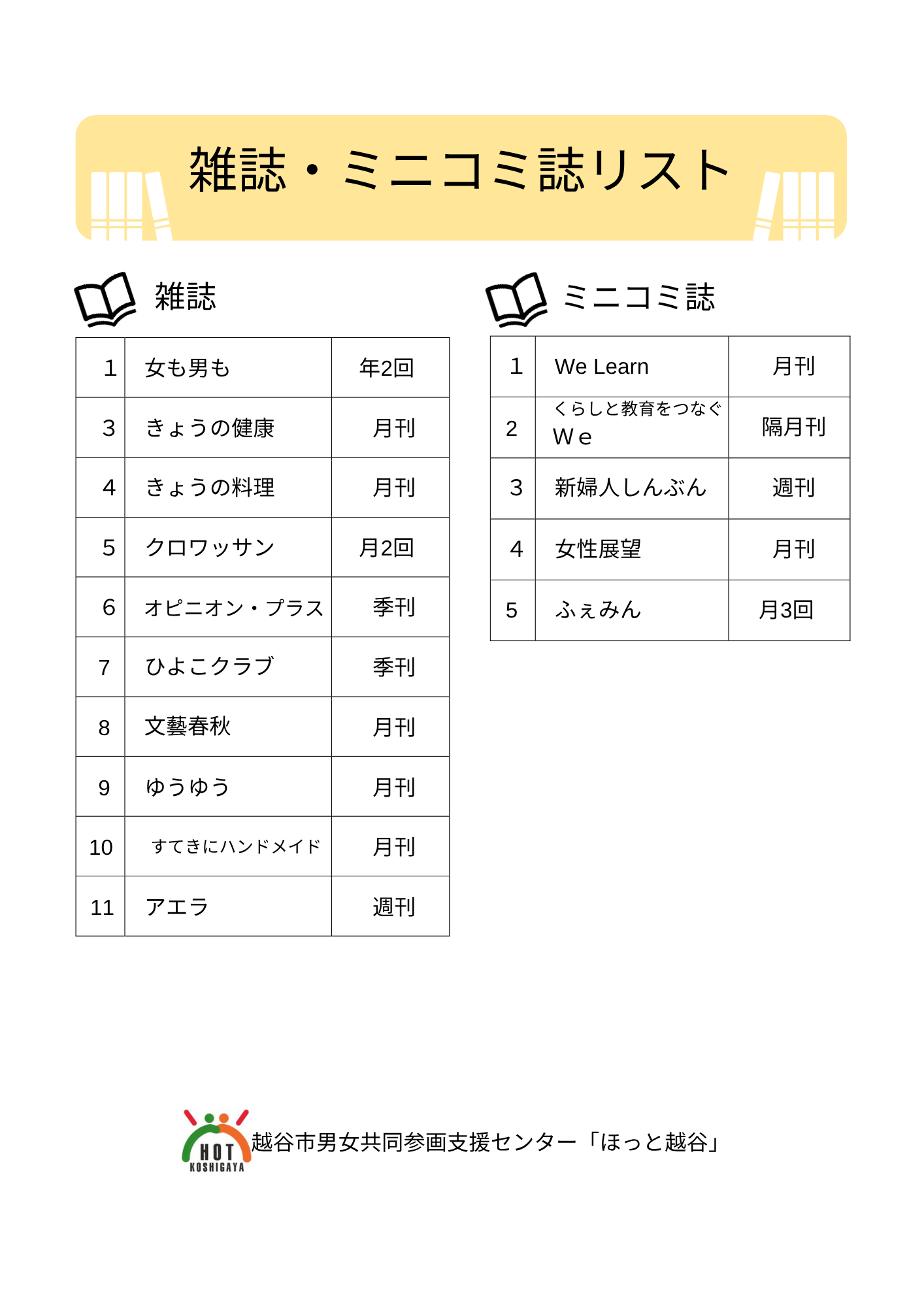 越谷市男女共同参画支援センター「ほっと越谷」は、指定管理者「街活性室株式会社」が管理運営しています。