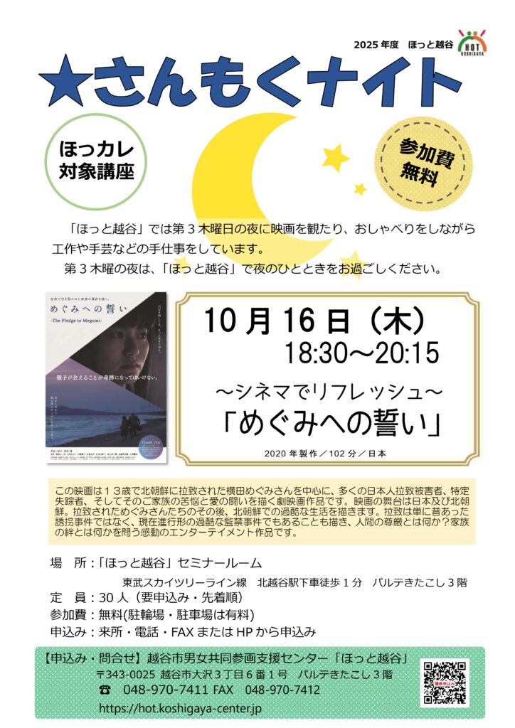 さんもくナイト ~シネマでリフレッシュ~  映画「めぐみへの誓い」