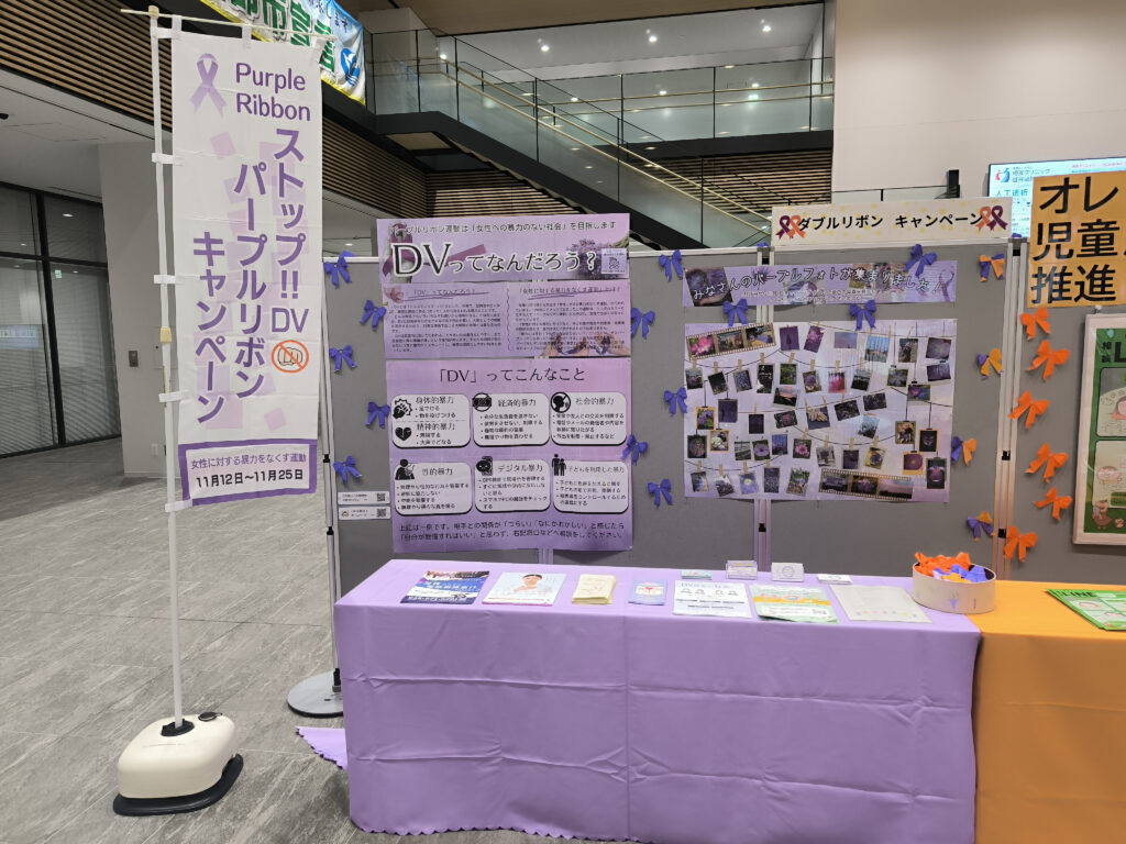 毎年11月12日から25日に行われている「女性に対する暴力をなくす運動(パープルリボン運動)」に際し、11月21日(金)から11月28日(金)まで市役所エントランス棟1階にて、「DVってなんだろう?」パネル展を開催しています。