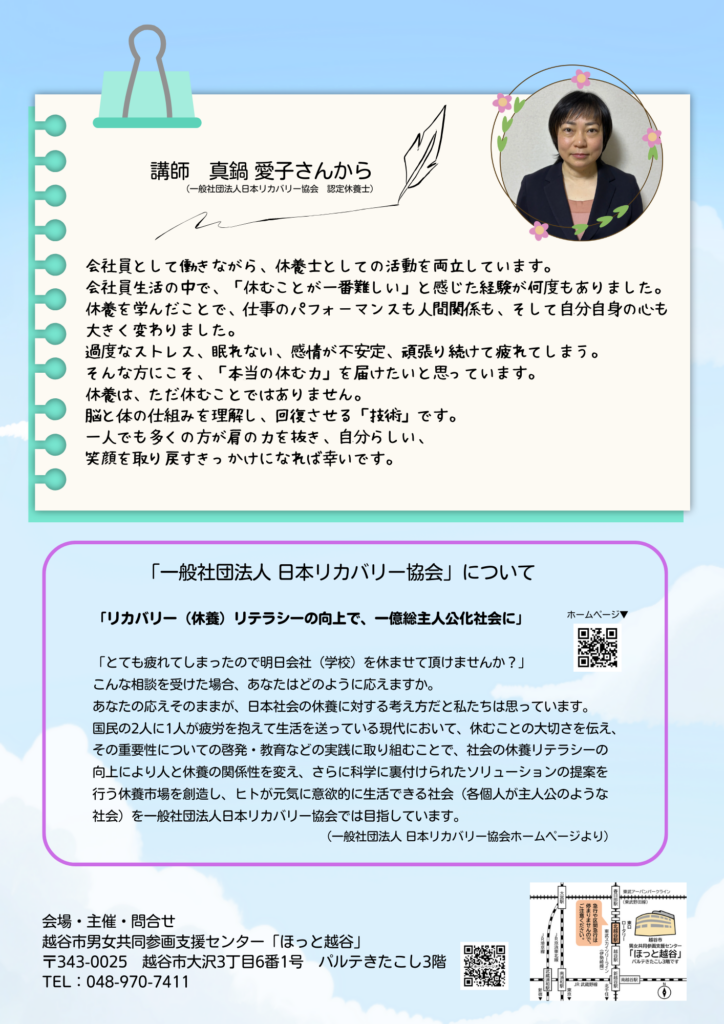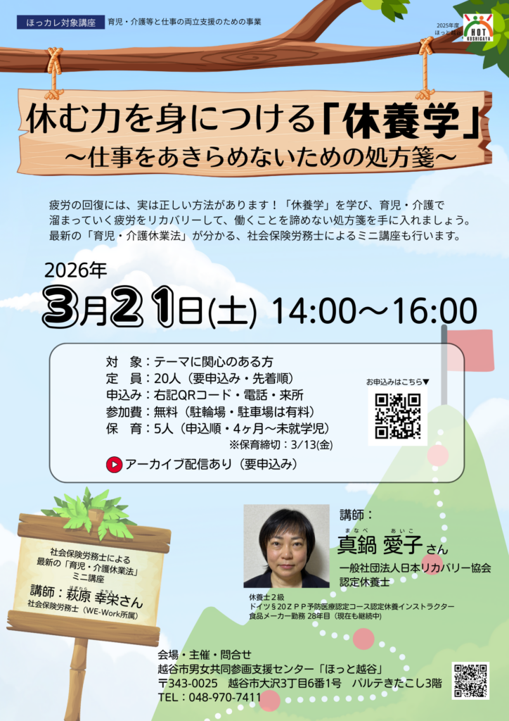 【講座】休む力を身につける「休養学」~仕事をあきらめないための処方箋~