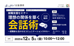 就職支援セミナー「理想の関係を築く会話術〜就職後も活かせるコミュニケーションスキル〜」新着!!